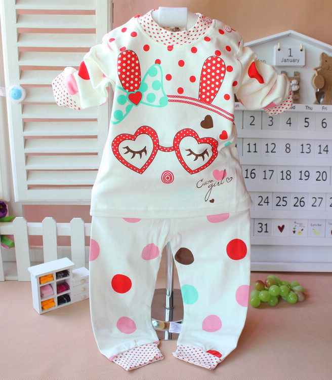 亮晨儿童内衣套装/女童肩扣纯棉内衣/彩点兔子春秋棉毛套21028网购者taobao返利查询